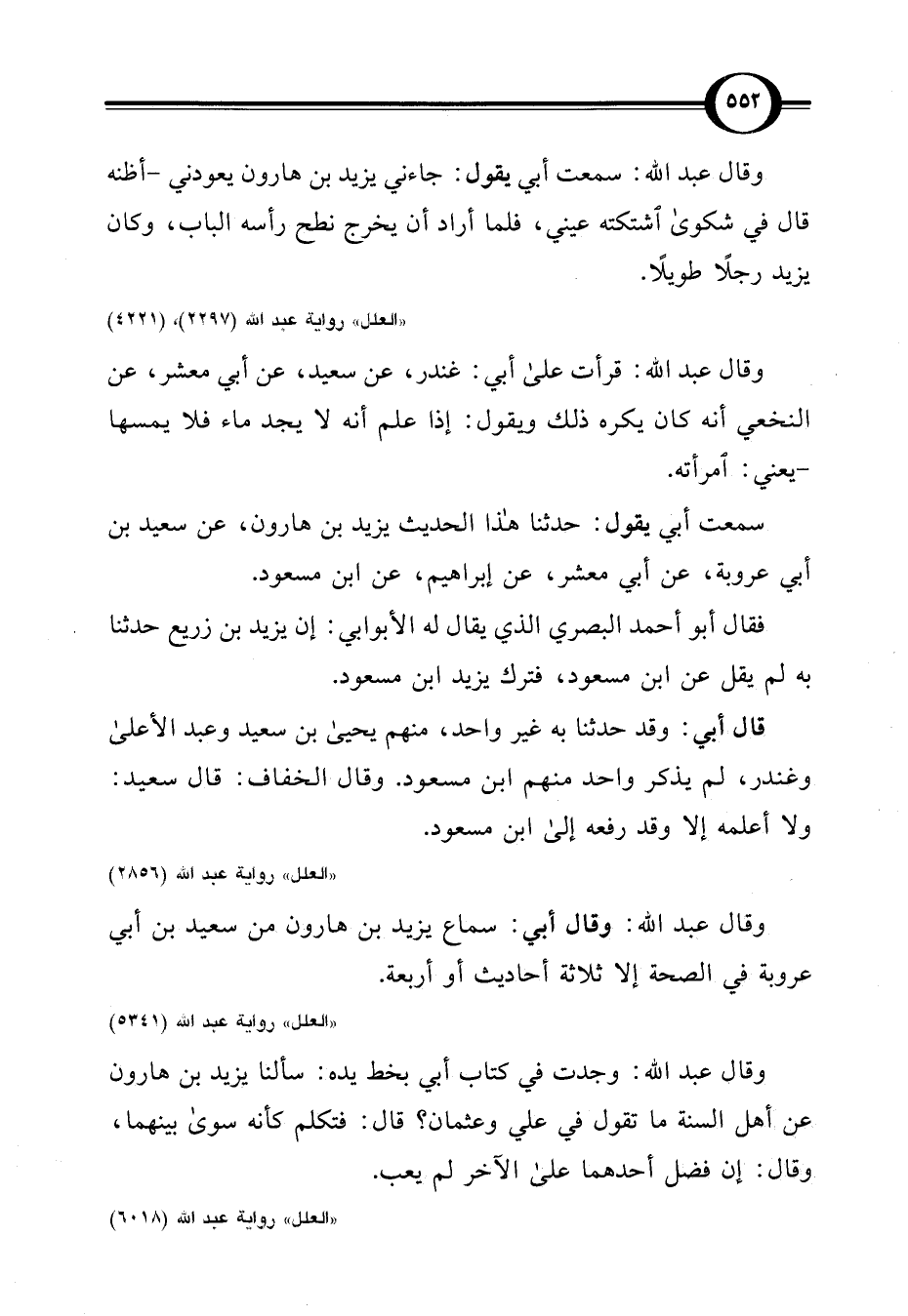 "العلل" رواية عبد اللَّه (2297)، (4221)