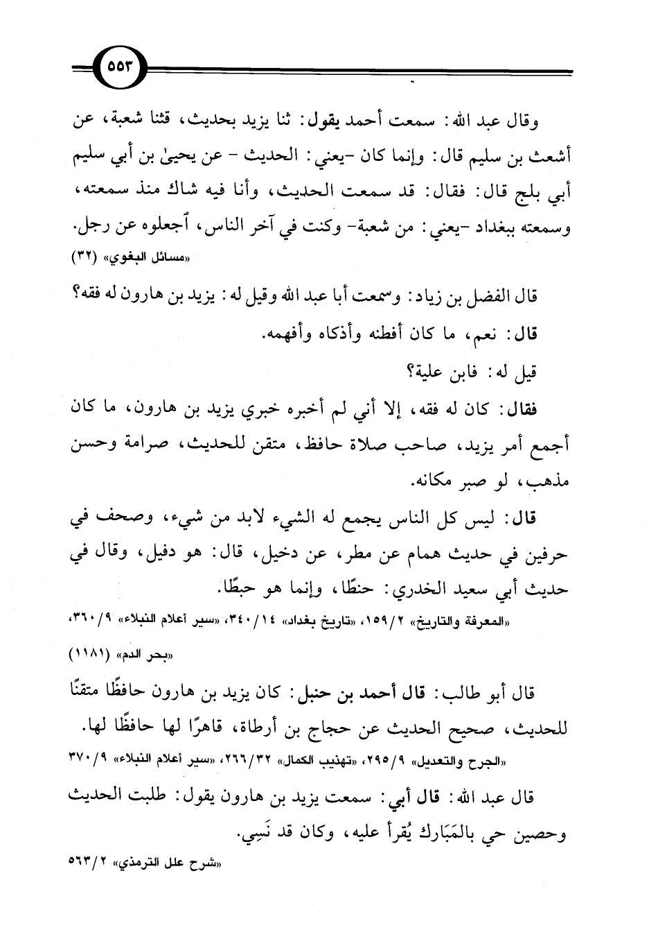 قال الفضل بن زياد: وسمعت أبا عبد اللَّه وقيل له: يزيد بن هارون له فقه؟