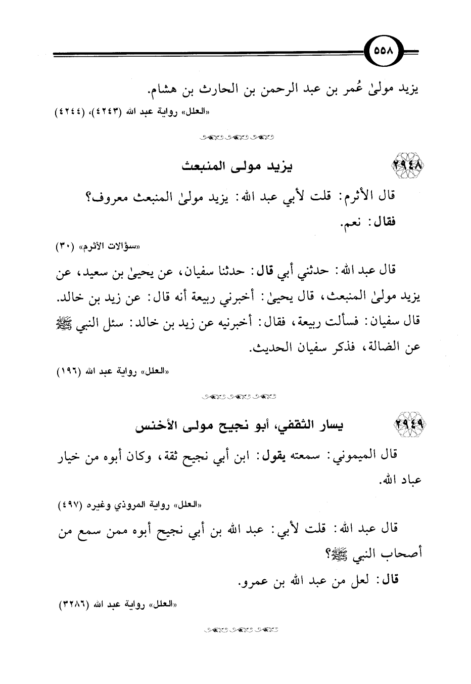 "العلل" رواية عبد اللَّه (4243)، (4244)