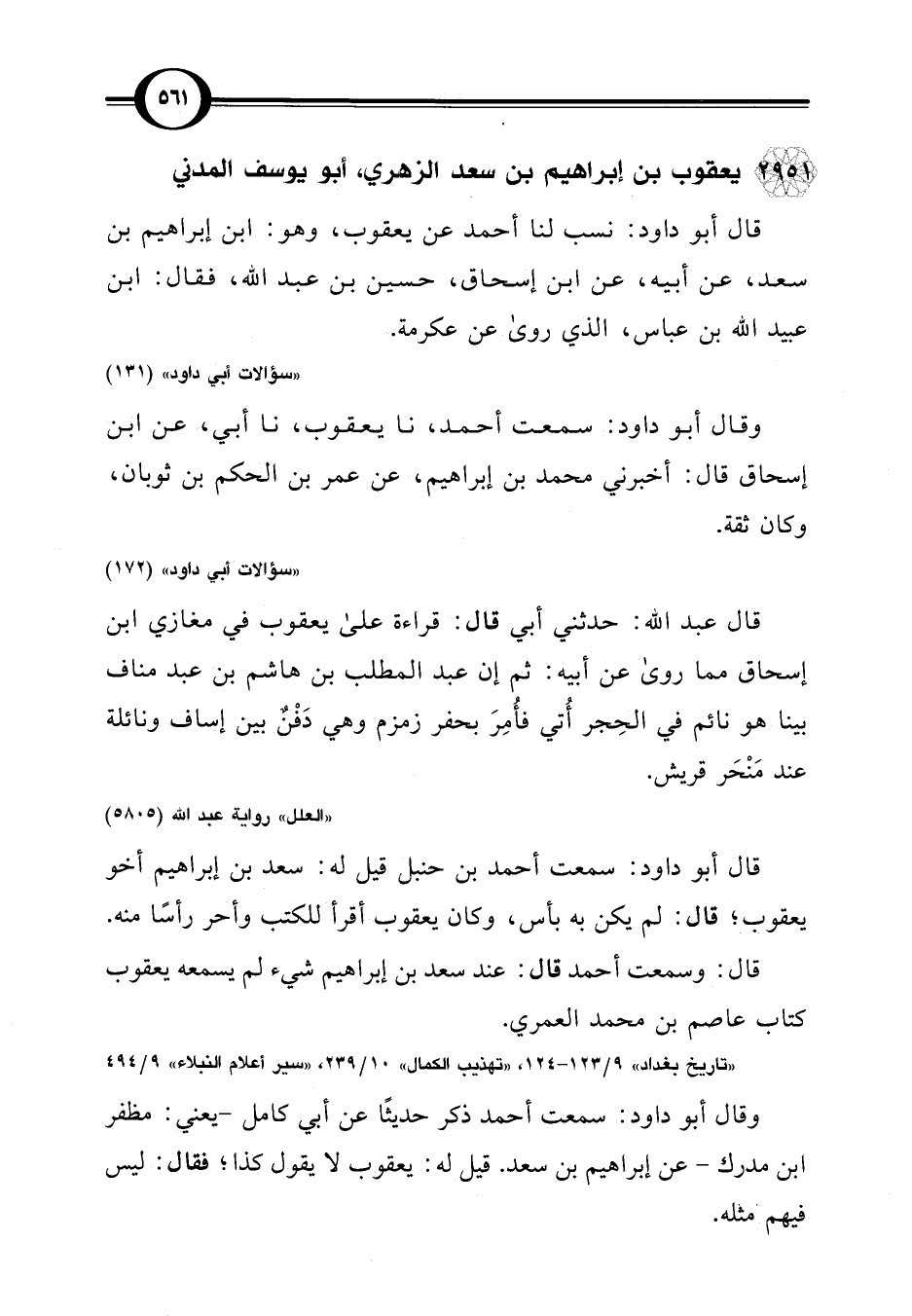 2951 - يعقوب بن إبراهيم بن سعد الزهري، أبو يوسف المدني
