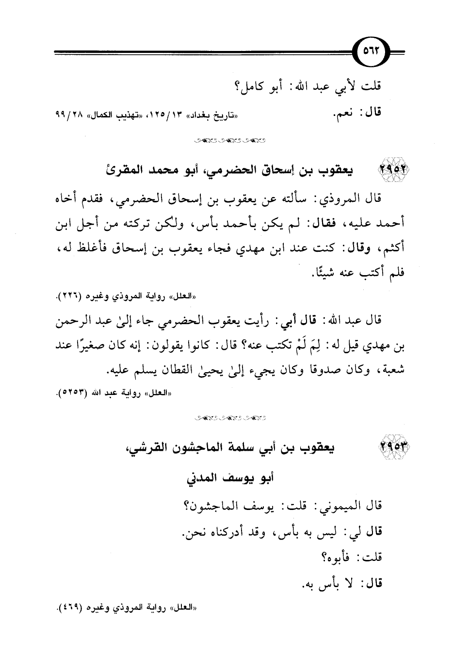 "تاريخ بغداد" 13/ 125، "تهذيب الكمال" 28/ 99