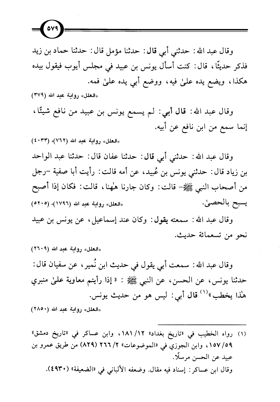 "العلل" رواية عبد اللَّه (762)، (4033)