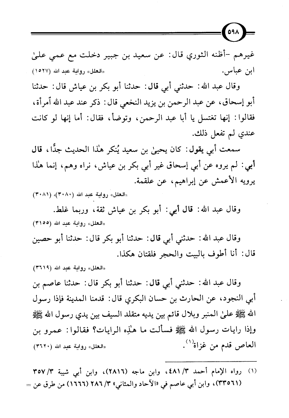 "العلل" رواية عبد اللَّه (3080)، (3081)