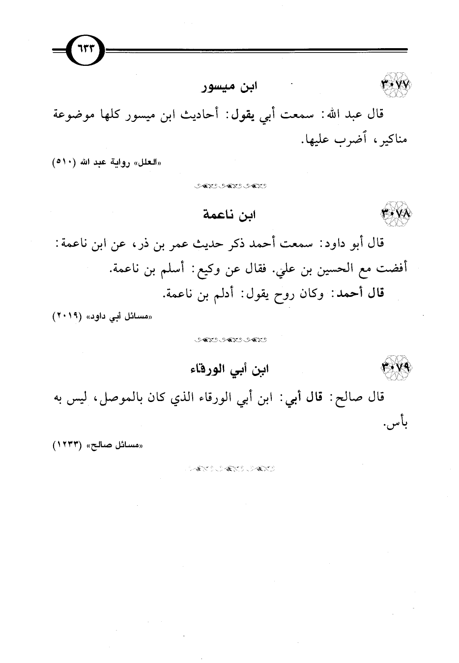 قال عبد اللَّه: سمعت أبي يقول: أحاديث ابن ميسور كلها موضوعة مناكير، اضرب عليها.