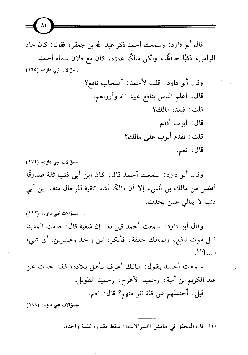 وقال أبو داود: قلت لأحمد: أصحاب نافع؟