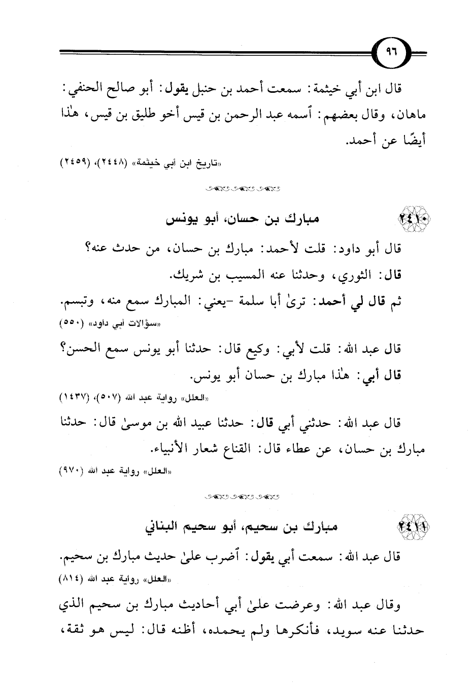 وقال عبد اللَّه: وعرضت على أبي أحاديث مبارك بن سحيم الذي حدثنا عنه سويد، فأنكرها ولم يحمده، أظنه قال: ليس هو ثقة،