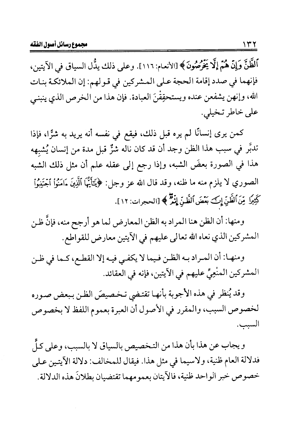وقد يُنظر في هذه الأجوبة بأنها تقتضي تخصيصَ الظن ببعض صوره لخصوص السبب، والمقرر في الأصول أن العبرة بعموم اللفظ لا بخصوص السبب.
