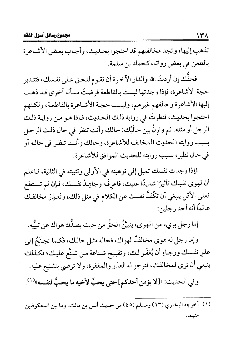(¬١) أخرجه البخاري (١٣) ومسلم (٤٥) من حديث أنس بن مالك. وما بين المعكوفتين منهما.