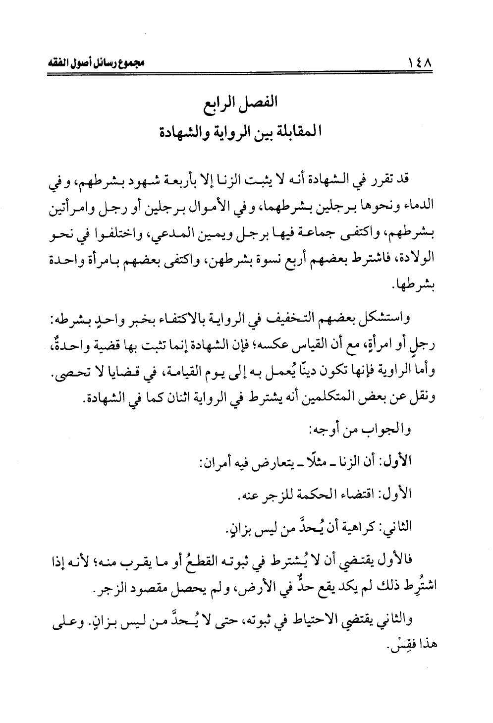 والثاني يقتضي الاحتياط في ثبوته، حتى لا يُحدَّ من ليس بزانٍ. وعلى هذا فقِسْ.