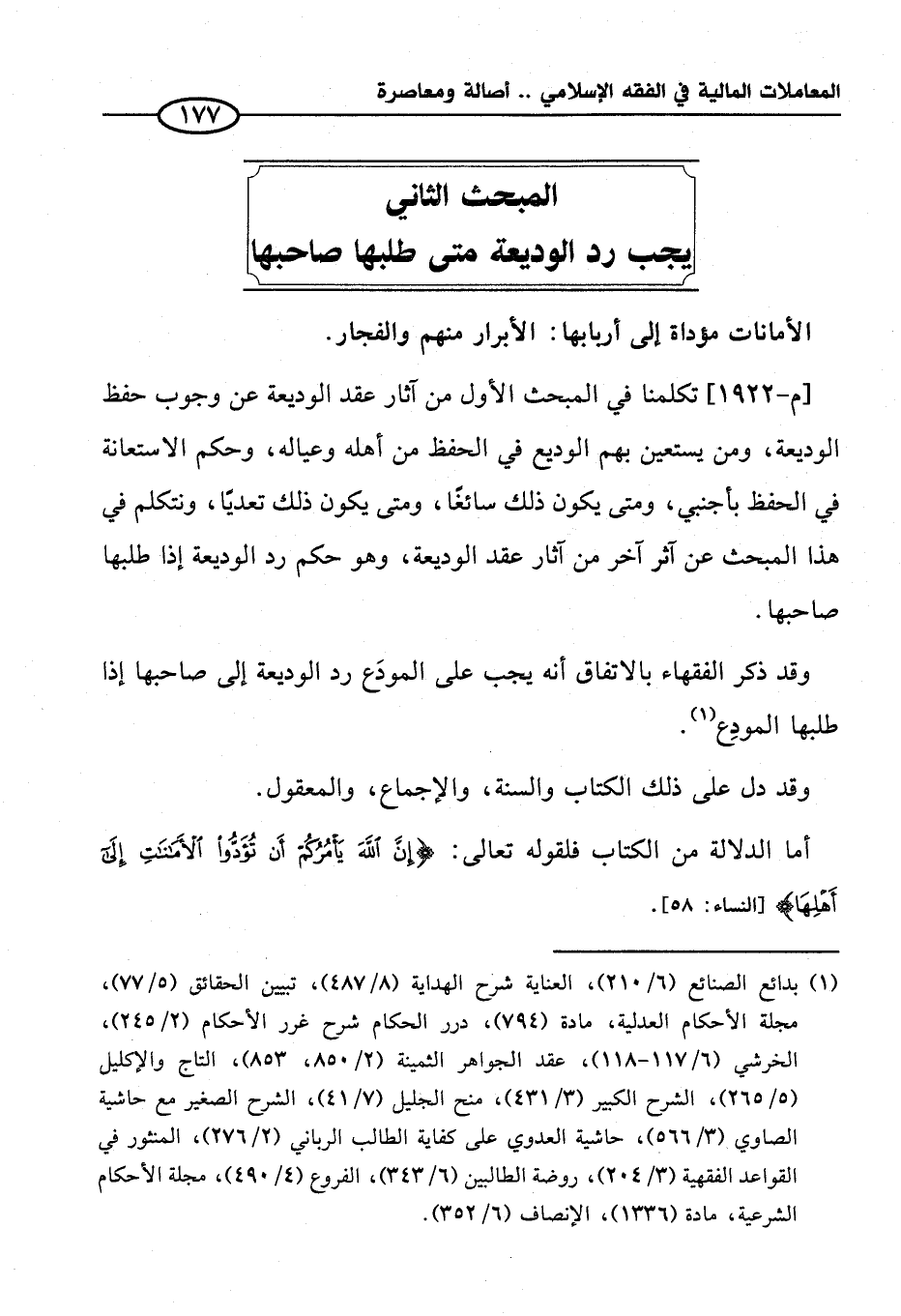 المبحث الثاني يجب رد الوديعة متى طلبها صاحبها