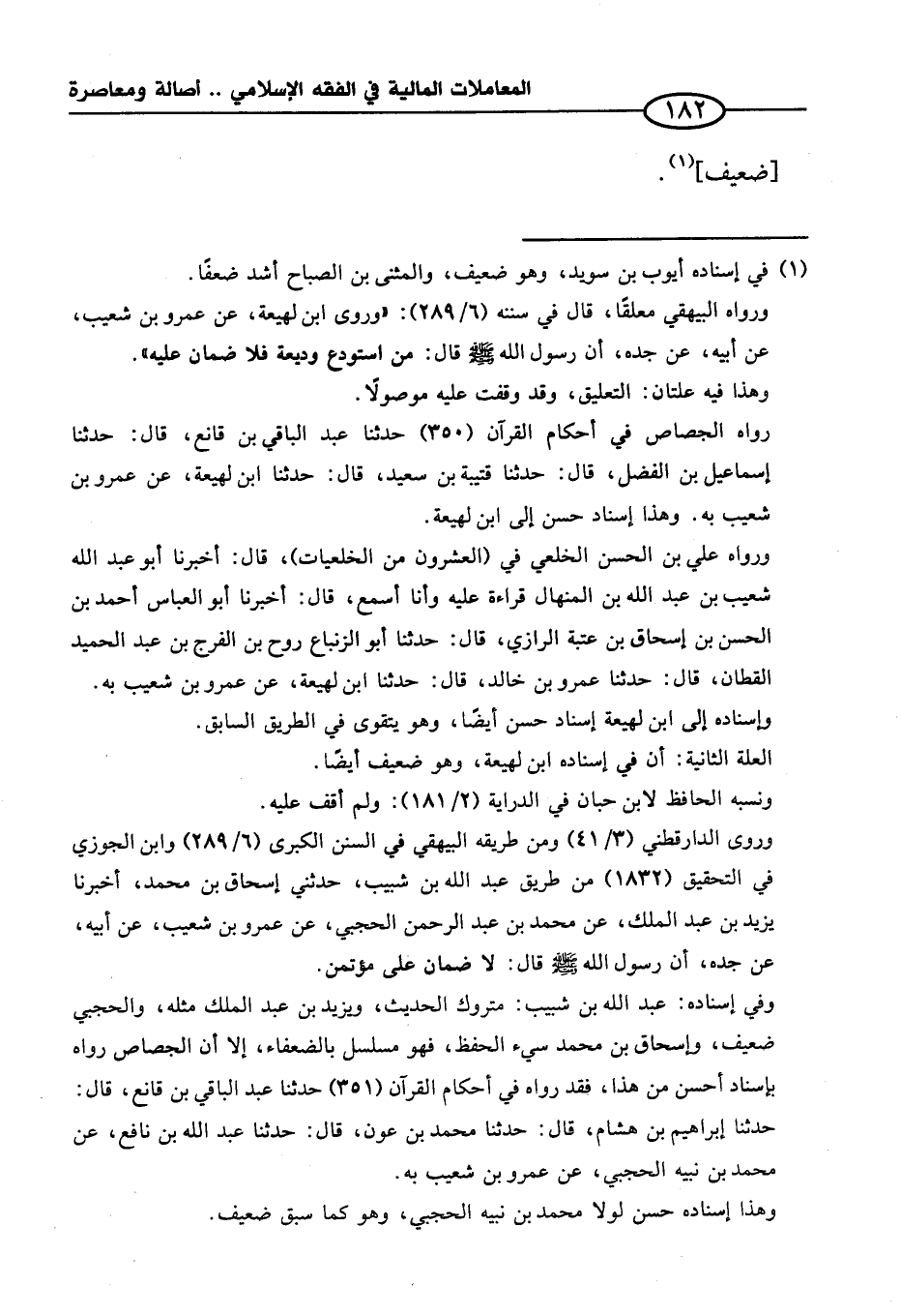 وروى الدارقطني (٣/ ٤١) ومن طريقه البيهقي في السنن الكبرى (٦/ ٢٨٩) وابن الجوزي في التحقيق (١٨٣٢) من طريق عبد الله بن شبيب، حدثني إسحاق بن محمَّد، أخبرنا يزيد بن عبد الملك، عن محمَّد بن عبد الرحمن الحجبي، عن عمرو بن شعيب، عن أبيه، عن جده، أن رسول الله - صلى الله عليه وسلم - قال: لا ضمان على مؤتمن.