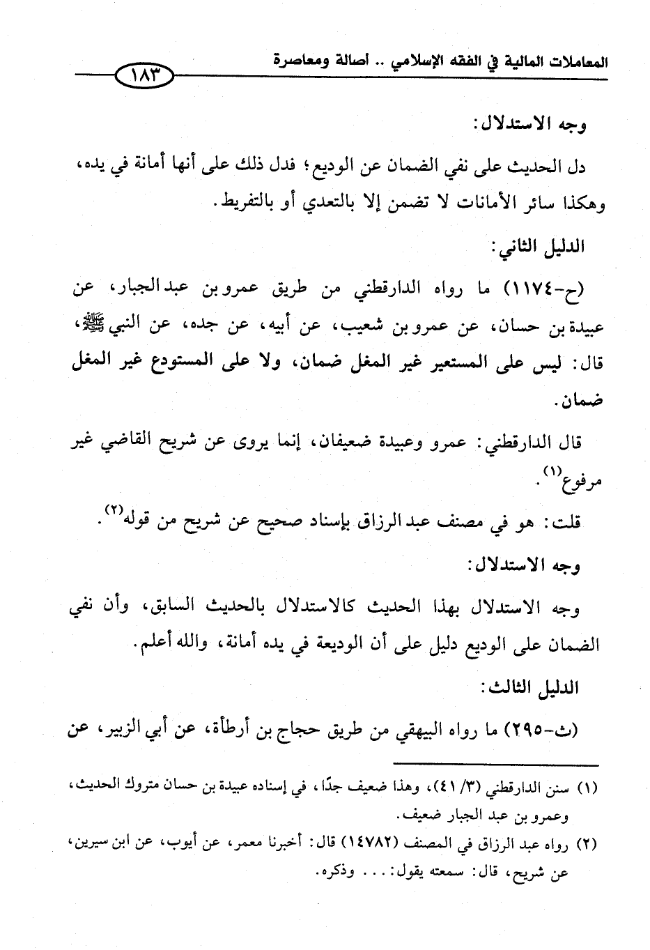 (ح-١١٧٤) ما رواه الدارقطني من طريق عمرو بن عبد الجبار، عن عبيدة بن حسان، عن عمرو بن شعيب، عن أبيه، عن جده، عن النبي - صلى الله عليه وسلم -، قال: ليس على المستعير غير المغل ضمان، ولا على المستودع غير المغل ضمان.