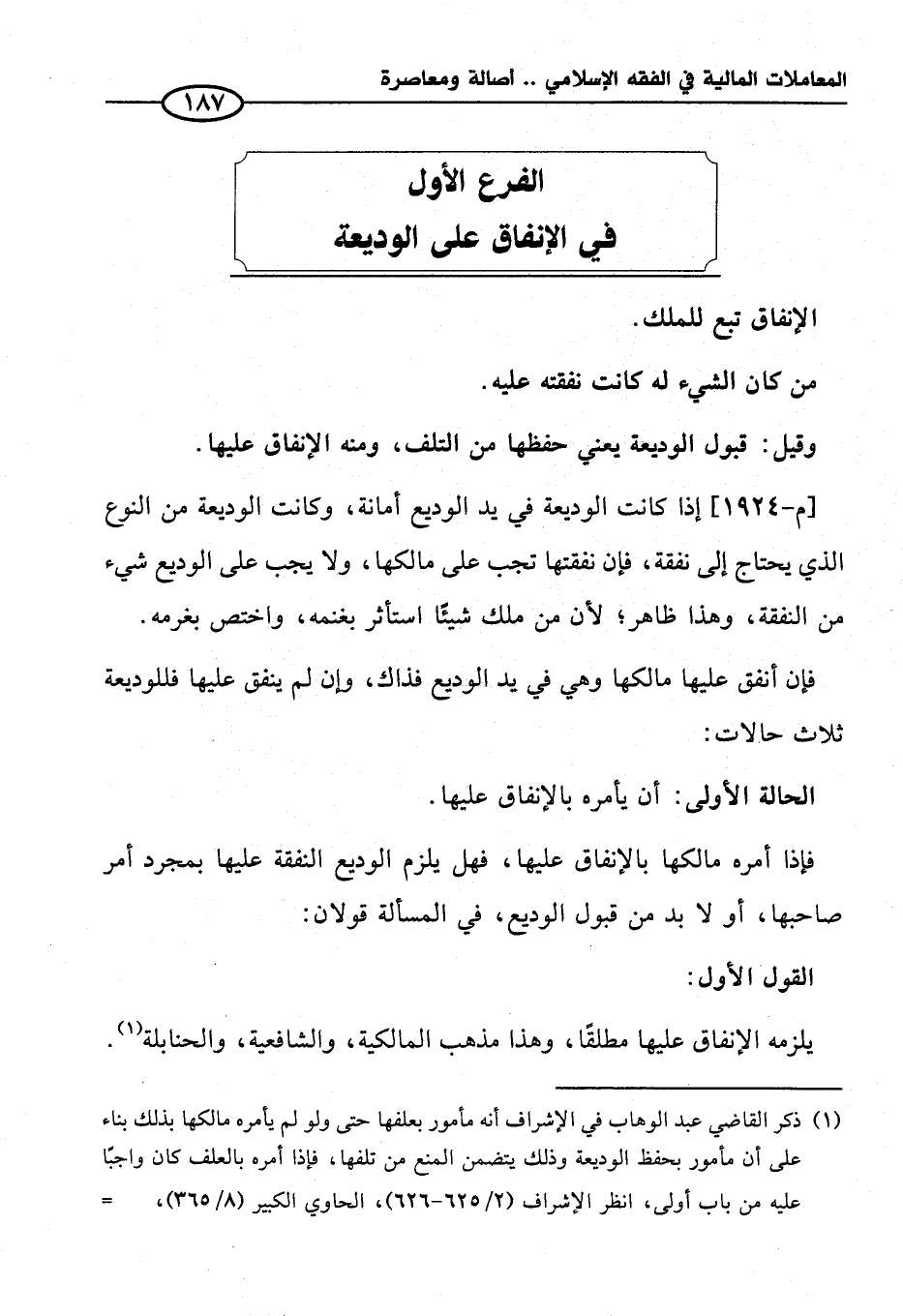 (¬١) ذكر القاضي عبد الوهاب في الإشراف أنه مأمور بعلفها حتى ولو لم يأمره مالكها بذلك بناء على أن مأمور بحفظ الوديعة وذلك يتضمن المنع من تلفها، فإذا أمره بالعلف كان واجبًا عليه من باب أولى، انظر الإشراف (٢/ ٦٢٥ - ٦٢٦)، الحاوي الكبير (٨/ ٣٦٥)، =