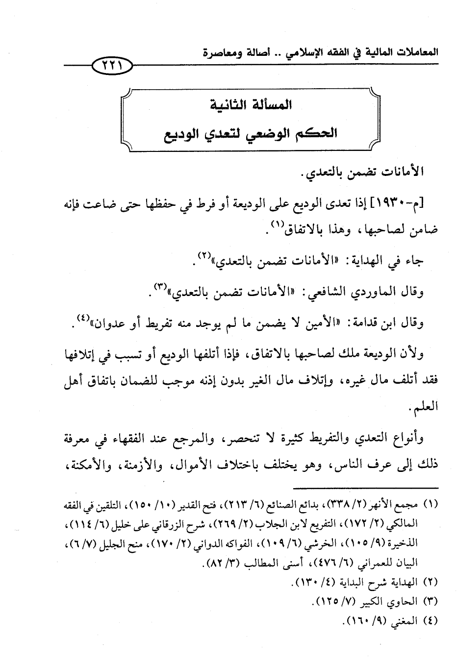 المسألة الثانية الحكم الوضعي لتعدي الوديع