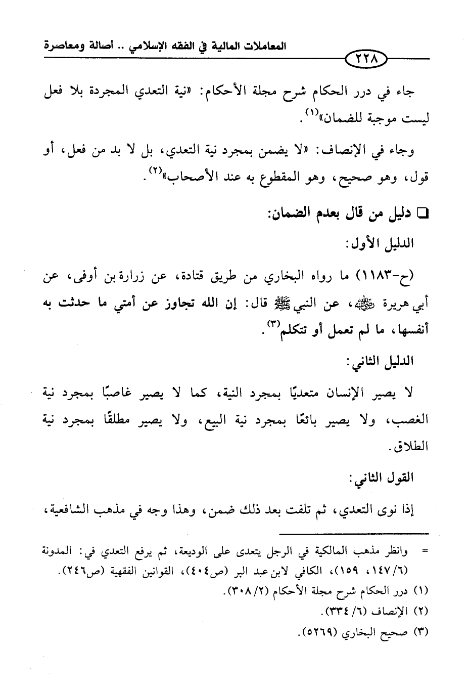 لا يصير الإنسان متعديًا بمجرد النية، كما لا يصير غاصبًا بمجرد نية الغصب، ولا يصير بائعًا بمجرد نية البيع، ولا يصير مطلقًا بمجرد نية الطلاق.