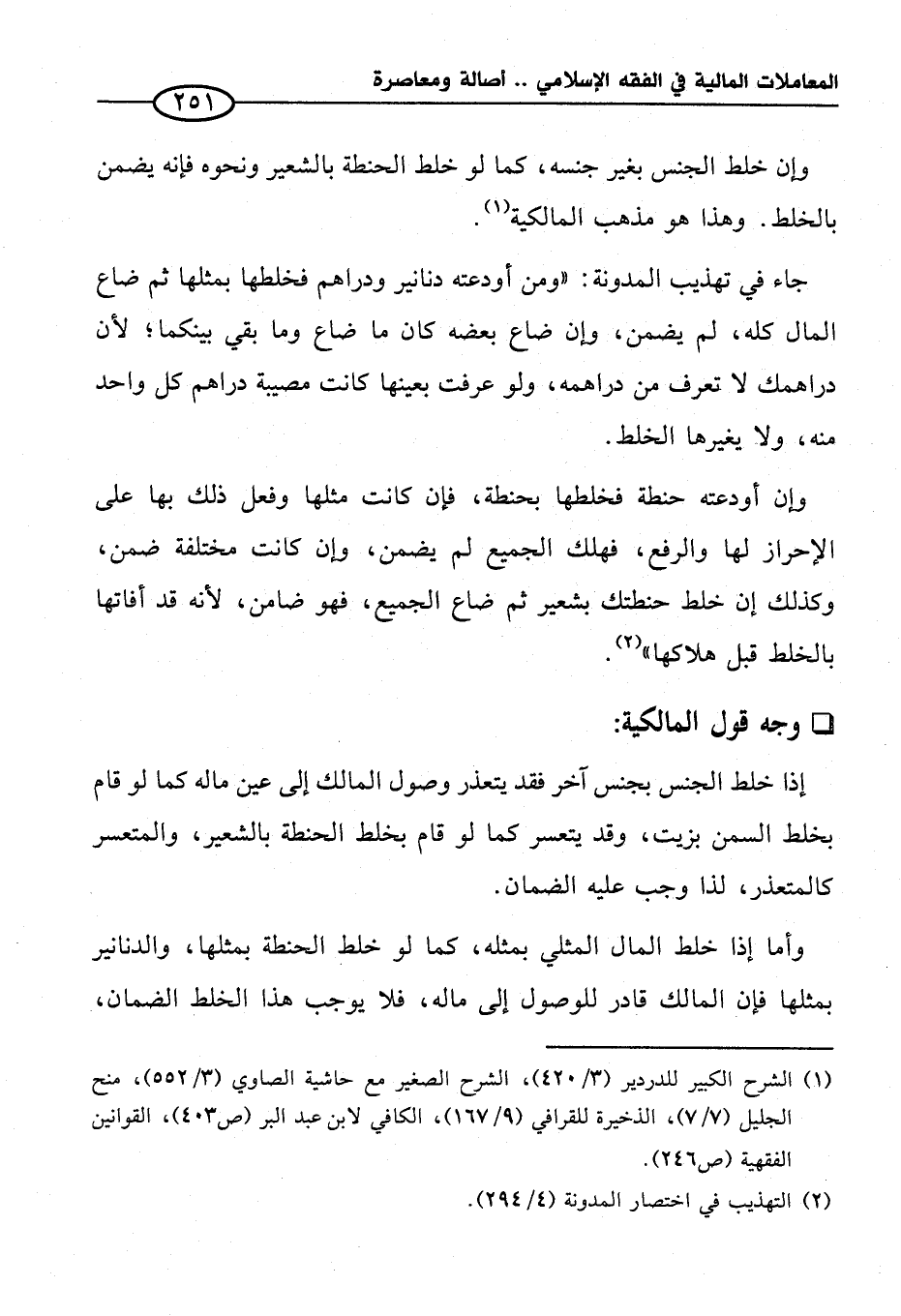 (¬١) الشرح الكبير للدردير (٣/ ٤٢٠)، الشرح الصغير مع حاشية الصاوي (٣/ ٥٥٢)، منح الجليل (٧/ ٧)، الذخيرة للقرافي (٩/ ١٦٧)، الكافي لابن عبد البر (ص ٤٠٣)، القوانين الفقهية (ص ٢٤٦).