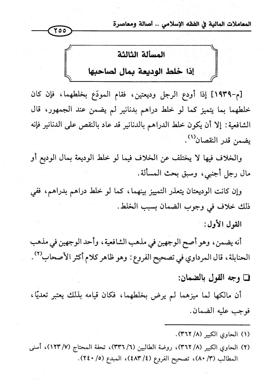 المسألة الثالثة إذا خلط الوديعة بمال لصاحبها