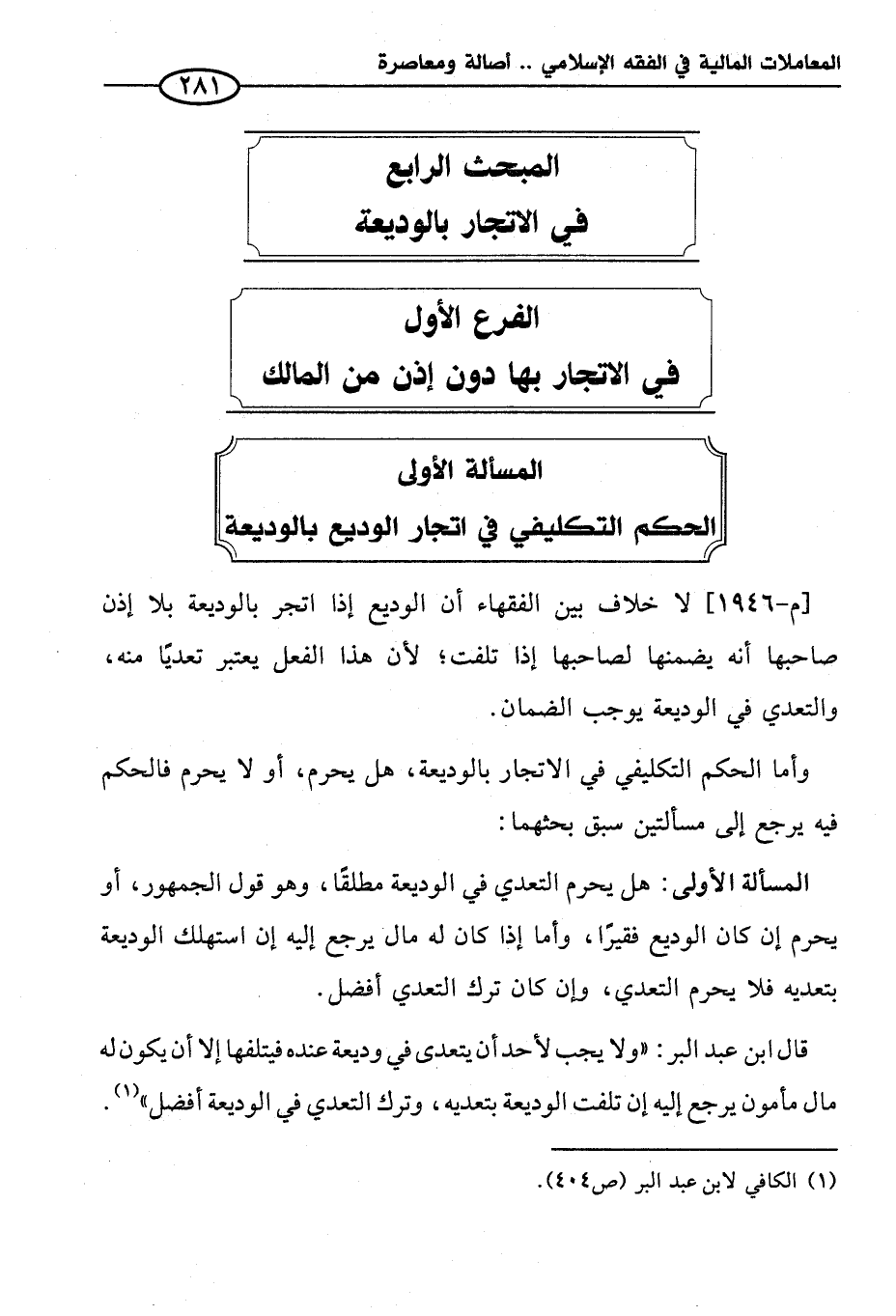 المبحث الرابع في الاتجار بالوديعة