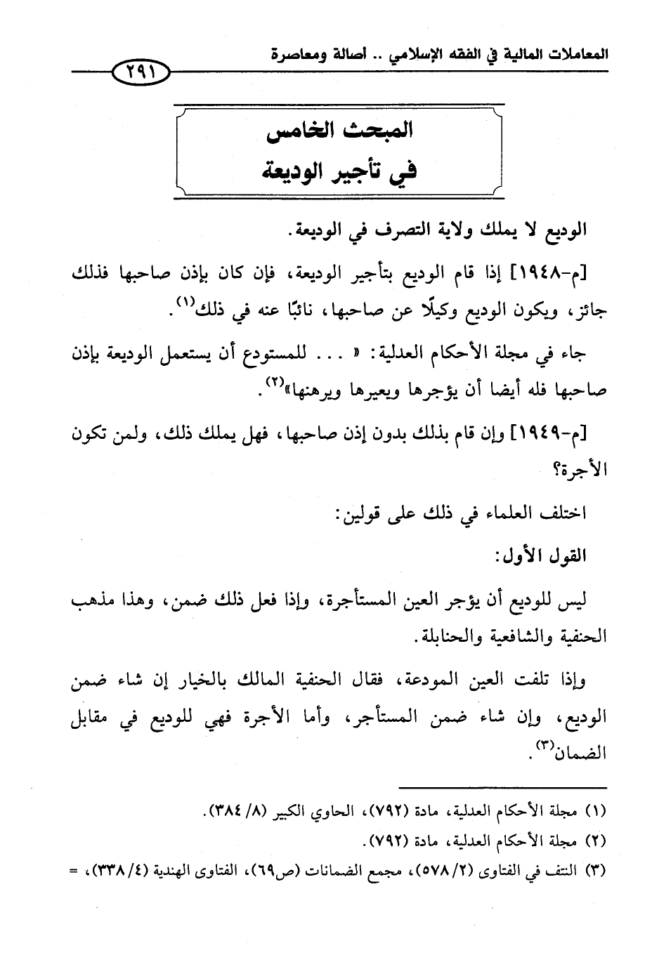 المبحث الخامس في تأجير الوديعة