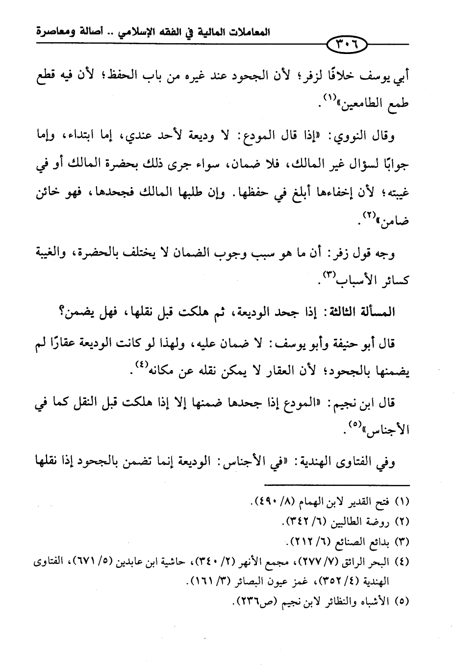 وفي الفتاوى الهندية: "في الأجناس: الوديعة إنما تضمن بالجحود إذا نقلها