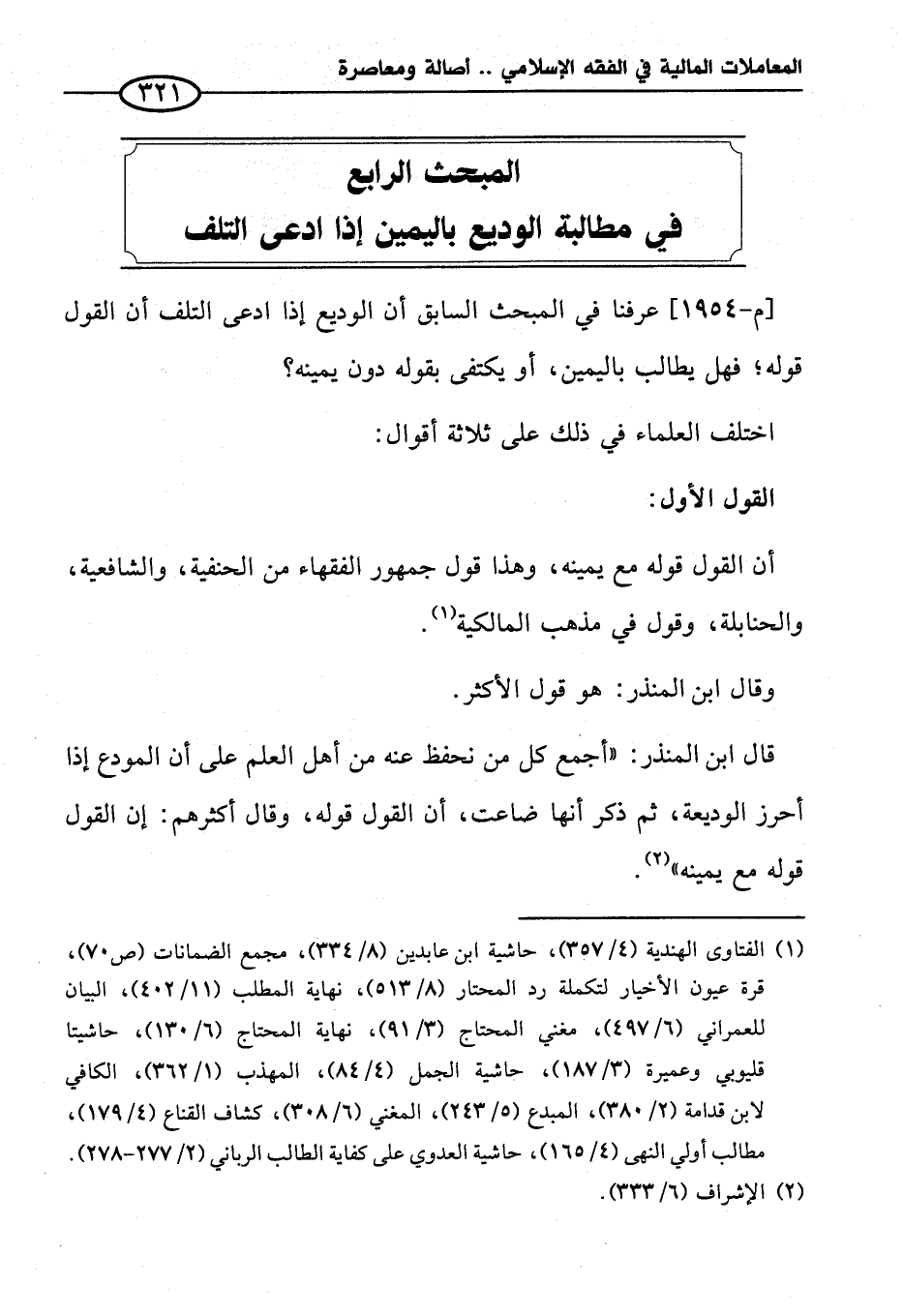 المبحث الرابع في مطالبة الوديع باليمين إذا ادعى التلف