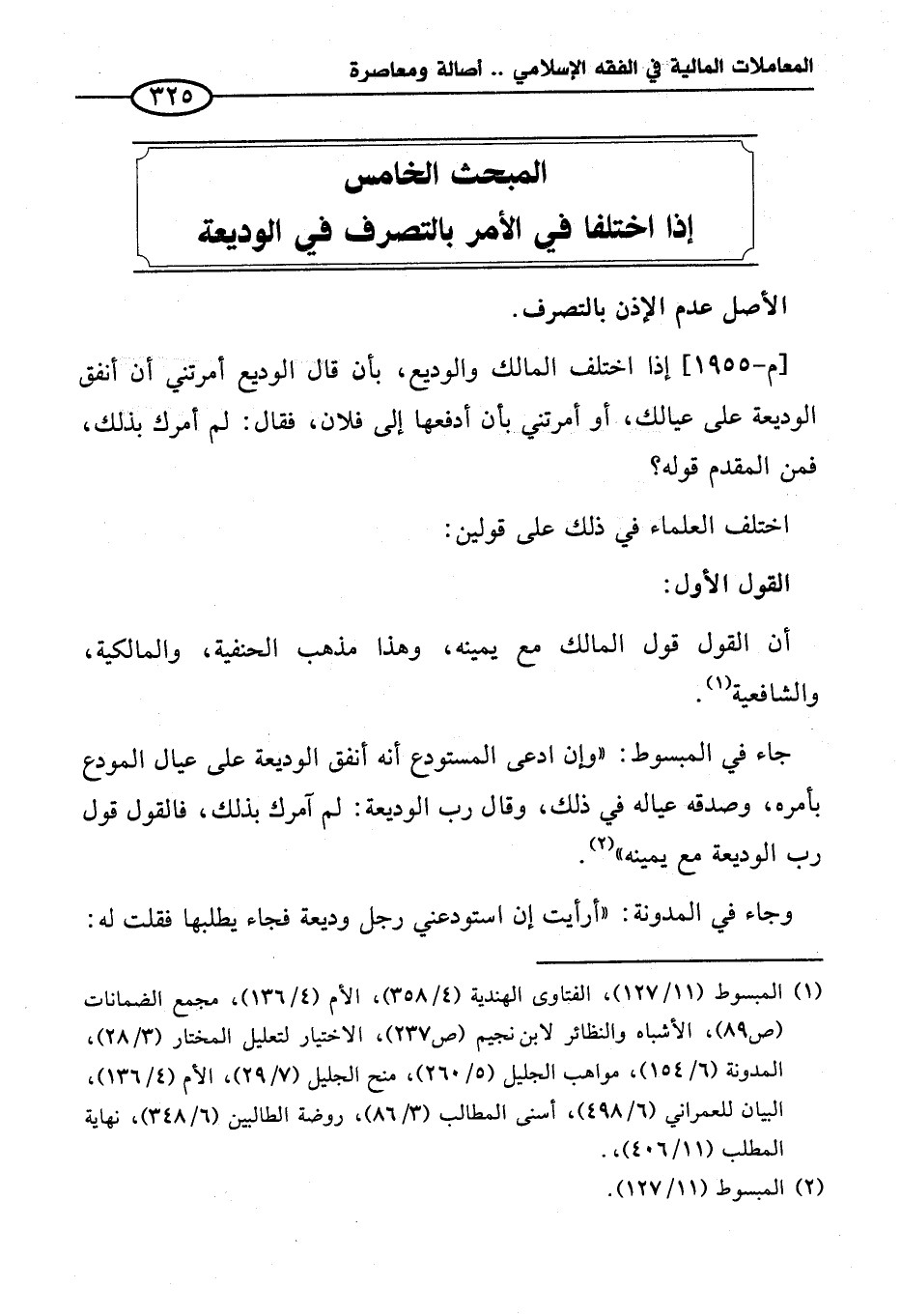 المبحث الخامس إذا اختلفا في الأمر بالتصرف في الوديعة