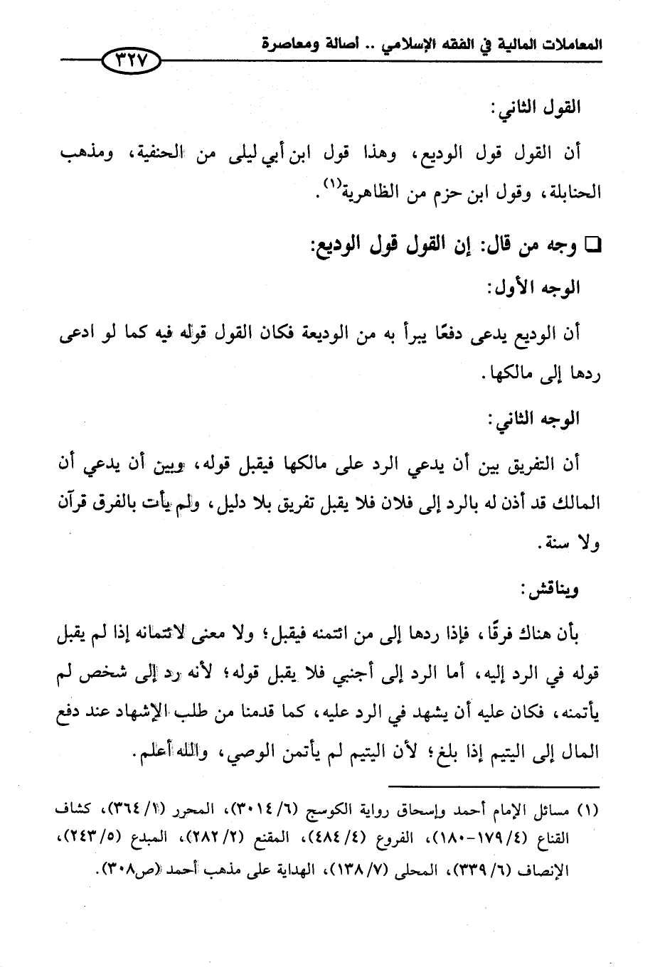 أن القول قول الوديع، وهذا قول ابن أبي ليلى من الحنفية، ومذهب الحنابلة، وقول ابن حزم من الظاهرية (¬١).