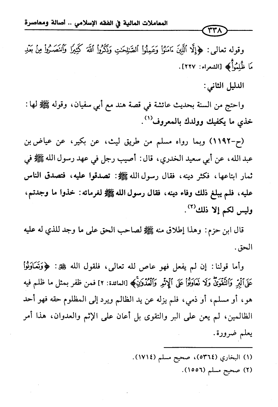 (ح-١١٩٢) وبما رواه مسلم من طريق ليث، عن بكير، عن عياض بن عبد الله، عن أبي سعيد الخدري، قال: أصيب رجل في عهد رسول الله - صلى الله عليه وسلم - في ثمار ابتاعها، فكثر دينه، فقال رسول الله - صلى الله عليه وسلم -: تصدقوا عليه، فتصدق الناس عليه، فلم يبلغ ذلك وفاء دينه، فقال رسول الله - صلى الله عليه وسلم - لغرمائه: خذوا ما وجدتم، وليس لكم إلا ذلك (¬٢).