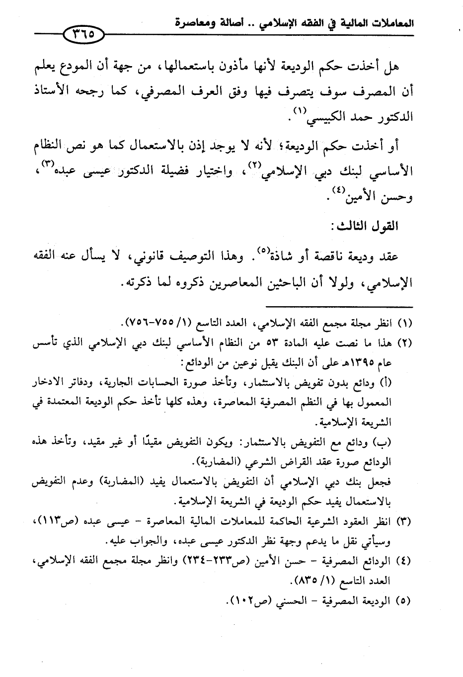 (¬٤) الودائع المصرفية - حسن الأمين (ص٢٣٣ - ٢٣٤) وانظر مجلة مجمع الفقه الإسلامي، العدد التاسع (١/ ٨٣٥).