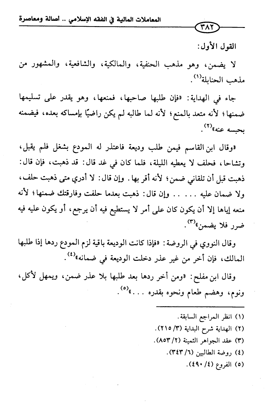 "وقال ابن القاسم فيمن طلب وديعة فاعتذر له المودع بشغل فلم يقبل، وتشاحا، فحلف لا يعطيه الليلة، فلما كان في غد قال: قد ذهبت، فإن قال: ذهبت قبل أن تلقاني ضمن؛ لأنه أقر بها. وإن قال: لا أدري متى ذهبت حلف، ولا ضمان عليه ..... وإن قال: ذهبت بعدما حلفت وفارقتك ضمنها؛ لأنه منعه إياها إلا أن يكون كان على أمر لا يستطيع فيه أن يرجع، أو يكون عليه فيه ضرر فلا يضمن" (¬٣).