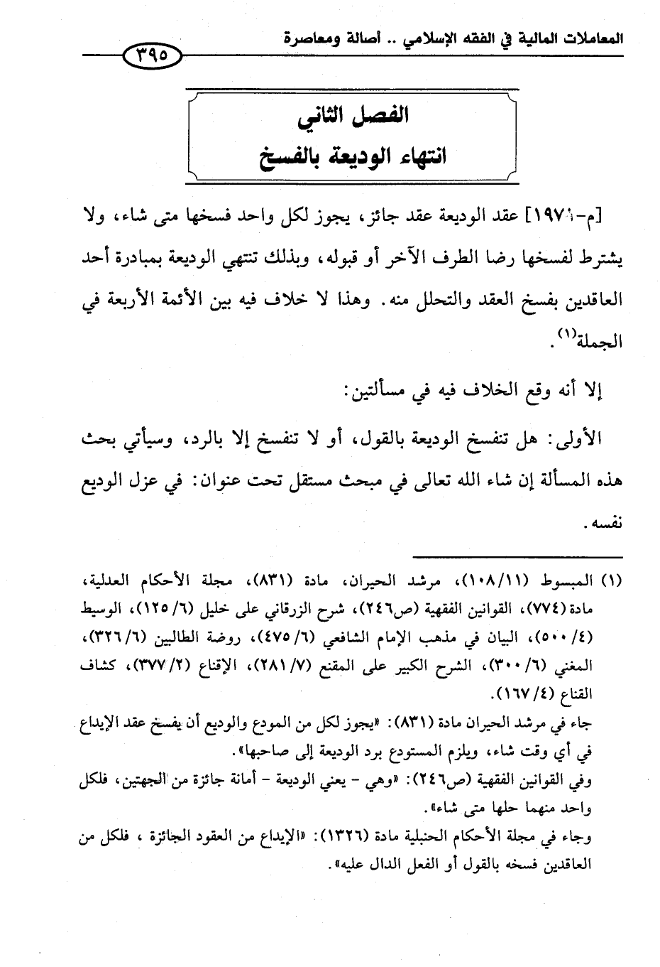 الفصل الثاني انتهاء الوديعة بالفسخ