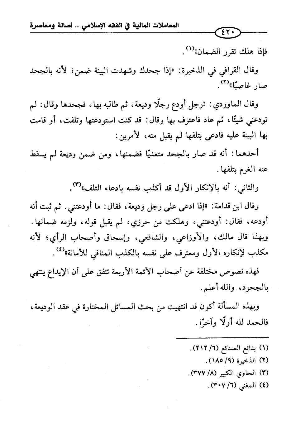 فهذه نصوص مختلفة عن أصحاب الأئمة الأربعة تتفق على أن الإيداع ينتهي بالجحود، والله أعلم.