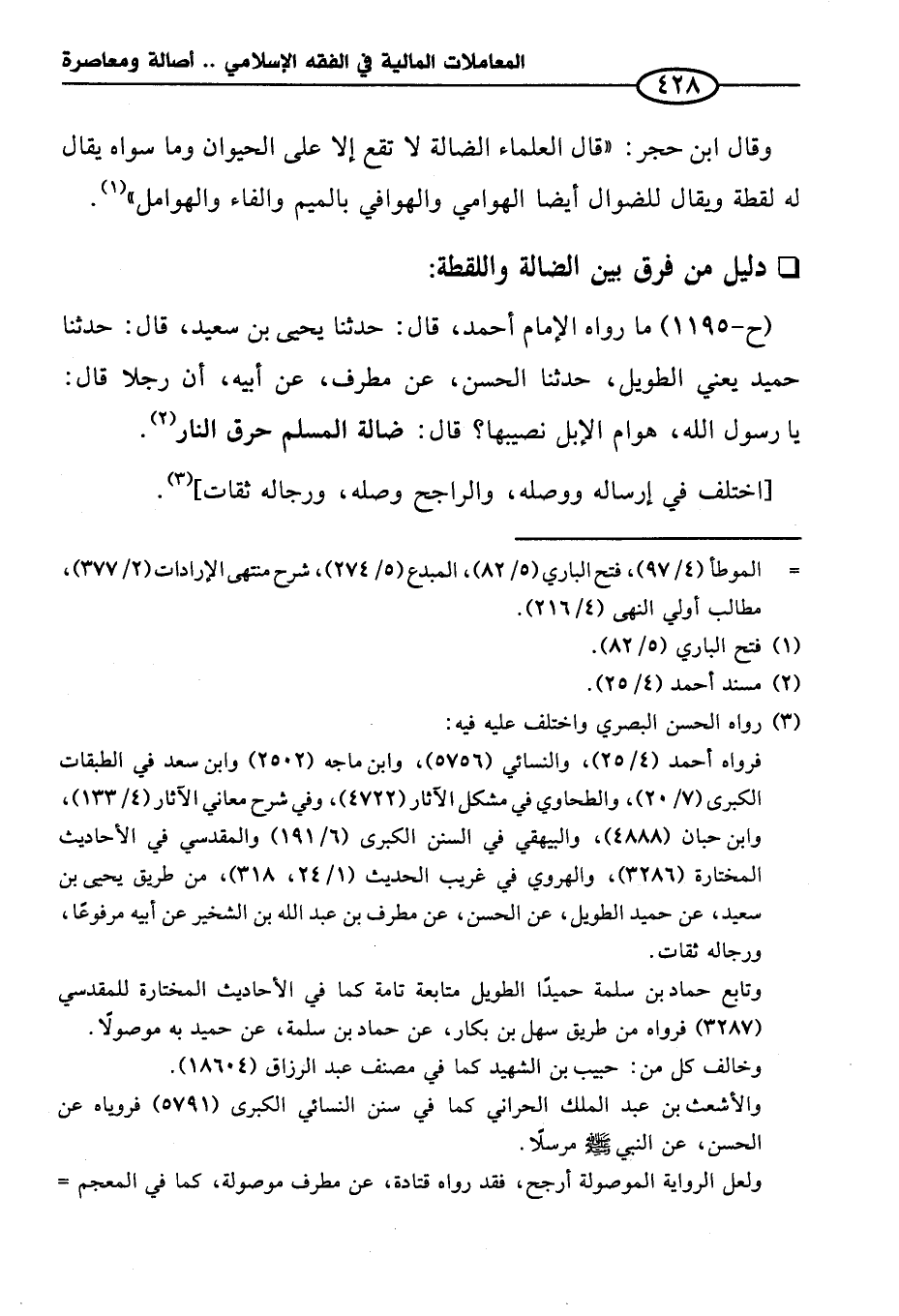 (ح-١١٩٥) ما رواه الإمام أحمد، قال: حدثنا يحيى بن سعيد، قال: حدثنا حميد يعني الطويل، حدثنا الحسن، عن مطرف، عن أبيه، أن رجلا قال: يا رسول الله، هوام الإبل نصيبها؟ قال: ضالة المسلم حرق النار (¬٢).