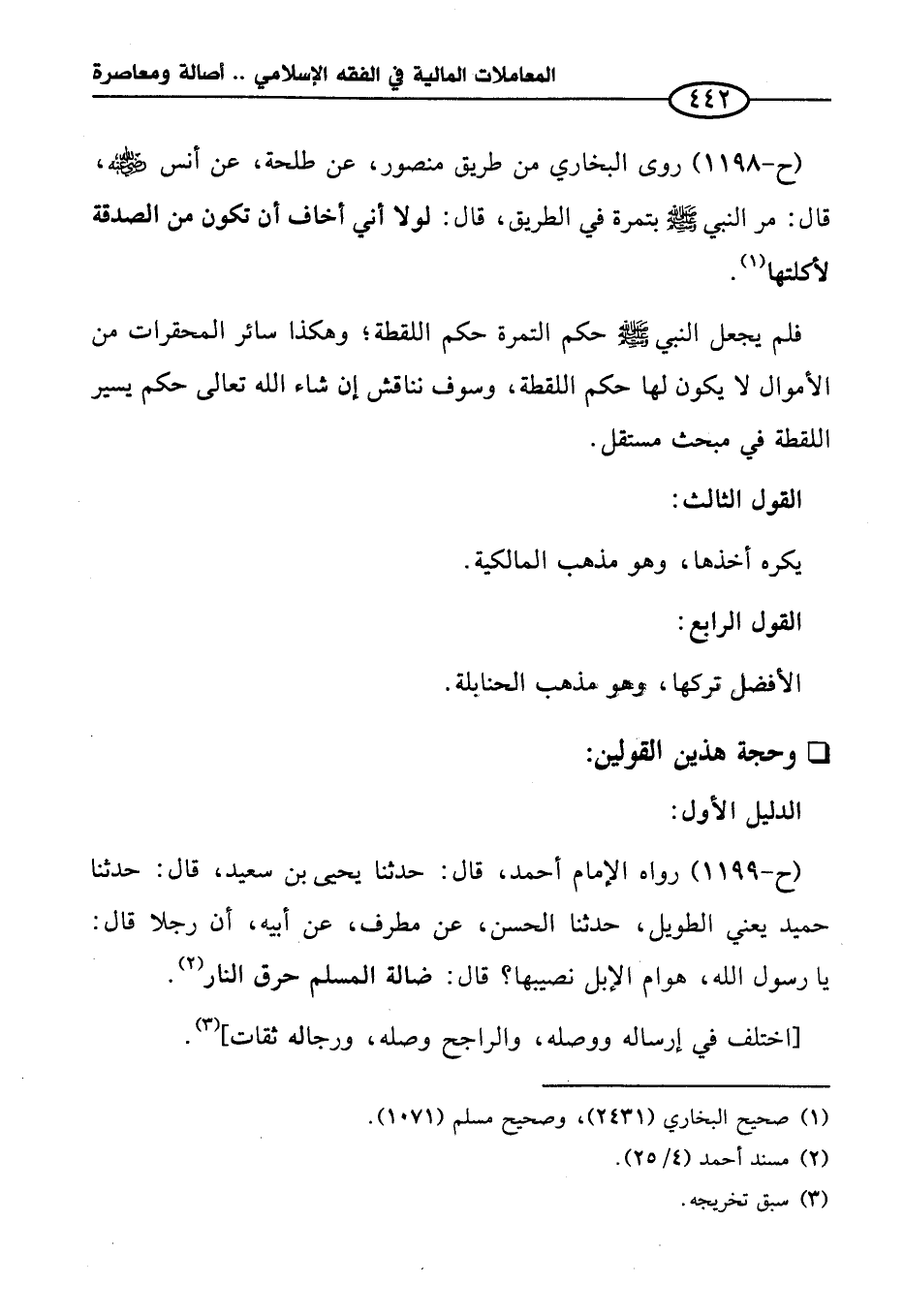 (ح-١١٩٨) روى البخاري من طريق منصور، عن طلحة، عن أنس - رضي الله عنه -، قال: مر النبي - صلى الله عليه وسلم - بتمرة في الطريق، قال: لولا أني أخاف أن تكون من الصدقة لأكلتها (¬١).