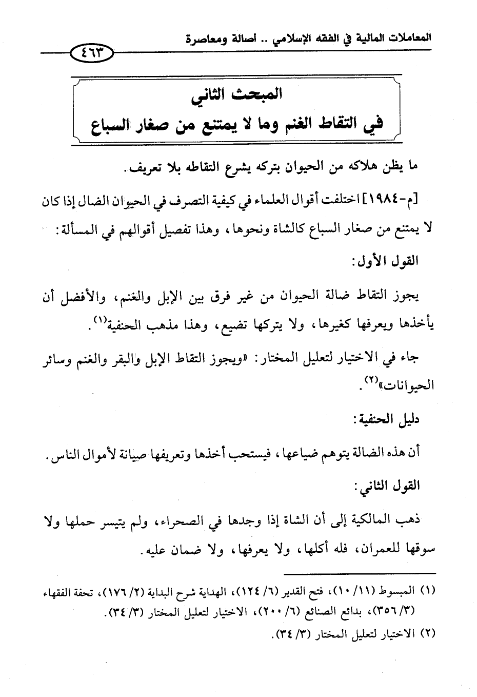 المبحث الثاني فى التقاط الغنم وما لا يمتنع من صغار السباع