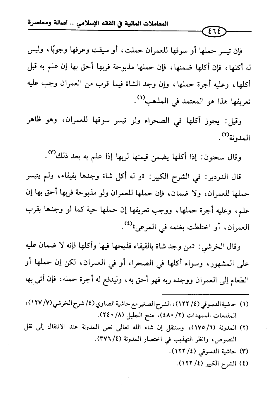 (¬١) حاشية الدسوقي (٤/ ١٢٢)، الشرح الصغير مع حاشية الصاوي (٤/ شرح الخرشي (٧/ ١٢٧)، المقدمات الممهدات (٢/ ٤٨٠)، منح الجليل (٨/ ٢٤٠).
