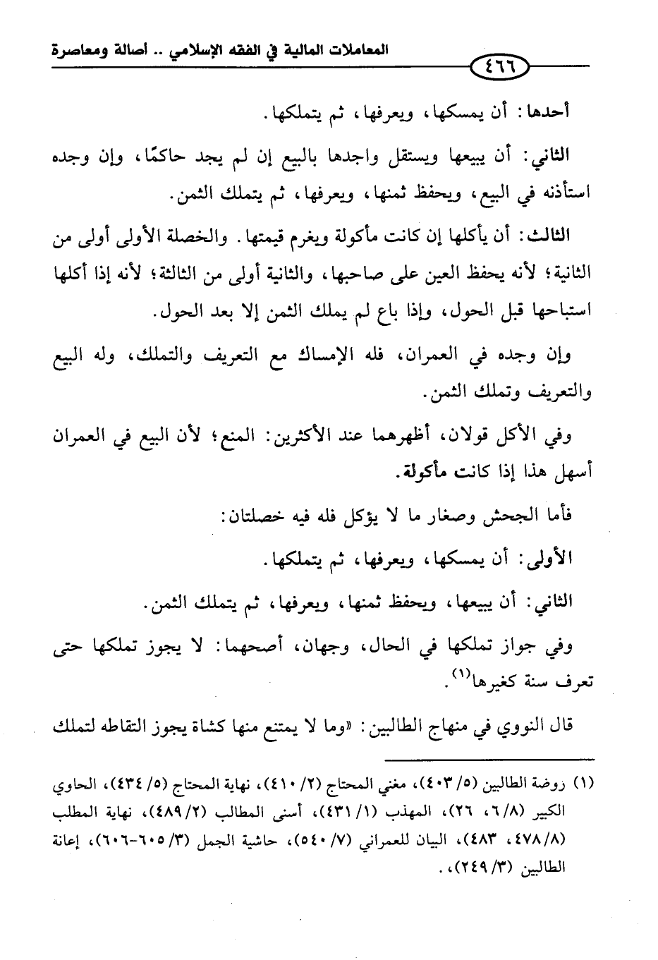 قال النووي في منهاج الطالبين: "وما لا يمتنع منها كشاة يجوز التقاطه لتملك