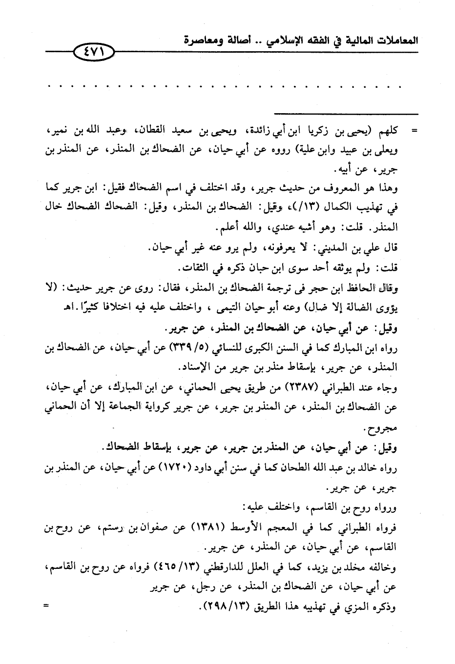 = كلهم (يحيى بن زكريا ابن أبي زائدة، ويحيى بن سعيد القطان, وعبد الله بن نمير، ويعلى بن عبيد وابن علية) رووه عن أبي حيان، عن الضحاك بن المنذر، عن المنذر بن جرير، عن أبيه.