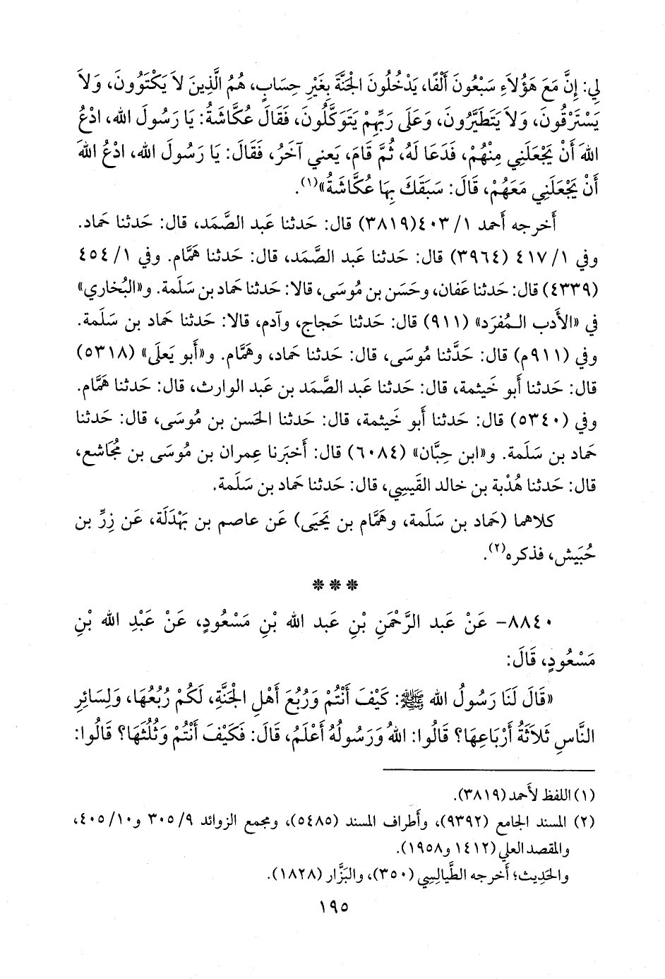 ثلاثتهم (أَبو بكر بن أبي شيبة، وأحمد بن حنبل، وأَبو خيثمة زهير بن حرب) عن عفان بن مسلم، عن عبد الواحد بن زياد، قال: حدثنا الحارث بن حصيرة، قال: حدثنا القاسم بن عبد الرَّحمَن، عن أبيه، فذكره (¬٢).