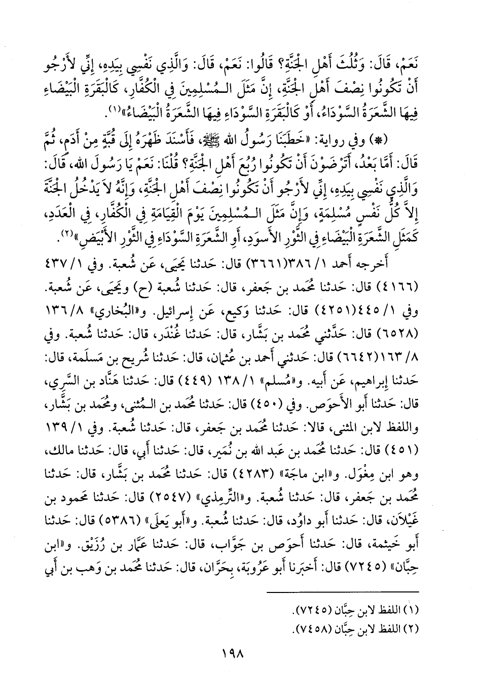 أخرجه أحمد (٣٦٦١) قال: حدثنا يحيى، عن شعبة. وفي ١/ ٤٣٧ (٤١٦٦) قال: حدثنا محمد بن جعفر، قال: حدثنا شعبة (ح) ويحيى، عن شعبة. وفي ١/ ٤٤٥ (٤٢٥١) قال: حدثنا وكيع، عن إسرائيل. و «البخاري» ٨/ ١١٠ (٦٥٢٨) قال: حدثني محمد بن بشار، قال: حدثنا غُندَر، قال: حدثنا شعبة. وفي ٨/ ١٣١ (٦٦٤٢) قال: حدثني أحمد بن عثمان، قال: حدثنا شريح بن مَسلَمة، قال: حدثنا إبراهيم، عن أبيه. و «مسلم» ١/ ١٣٨ (٤٤٩) قال: حدثنا هَنَّاد بن السَّري، قال: حدثنا أَبو الأحوص. وفي (٤٥٠) قال: حدثنا محمد بن المثنى، ومحمد بن بشار، واللفظ لابن المثنى, قالا: حدثنا محمد بن جعفر، قال: حدثنا شعبة. وفي ١/ ١٣٩ (٤٥١) قال: حدثنا محمد بن عبد الله بن نُمير، قال: حدثنا أبي، قال: حدثنا مالك، وهو ابن مِغْوَل. و «ابن ماجة» (٤٢٨٣) قال: حدثنا محمد بن بشار، قال: حدثنا محمد بن جعفر، قال: حدثنا شعبة. و «التِّرمِذي» (٢٥٤٧) قال: حدثنا محمود بن غَيلان، قال: حدثنا أَبو داود، قال: حدثنا شعبة. و «أَبو يَعلى» (٥٣٨٦) قال: حدثنا أَبو خيثمة، قال: حدثنا أَحوص بن جَوَّاب، قال: حدثنا عمار بن رُزيق. و «ابن حِبَّان» (٧٢٤٥) قال: أخبرنا أَبو عَروبَة، بحران، قال: حدثنا محمد بن وهب بن أبي