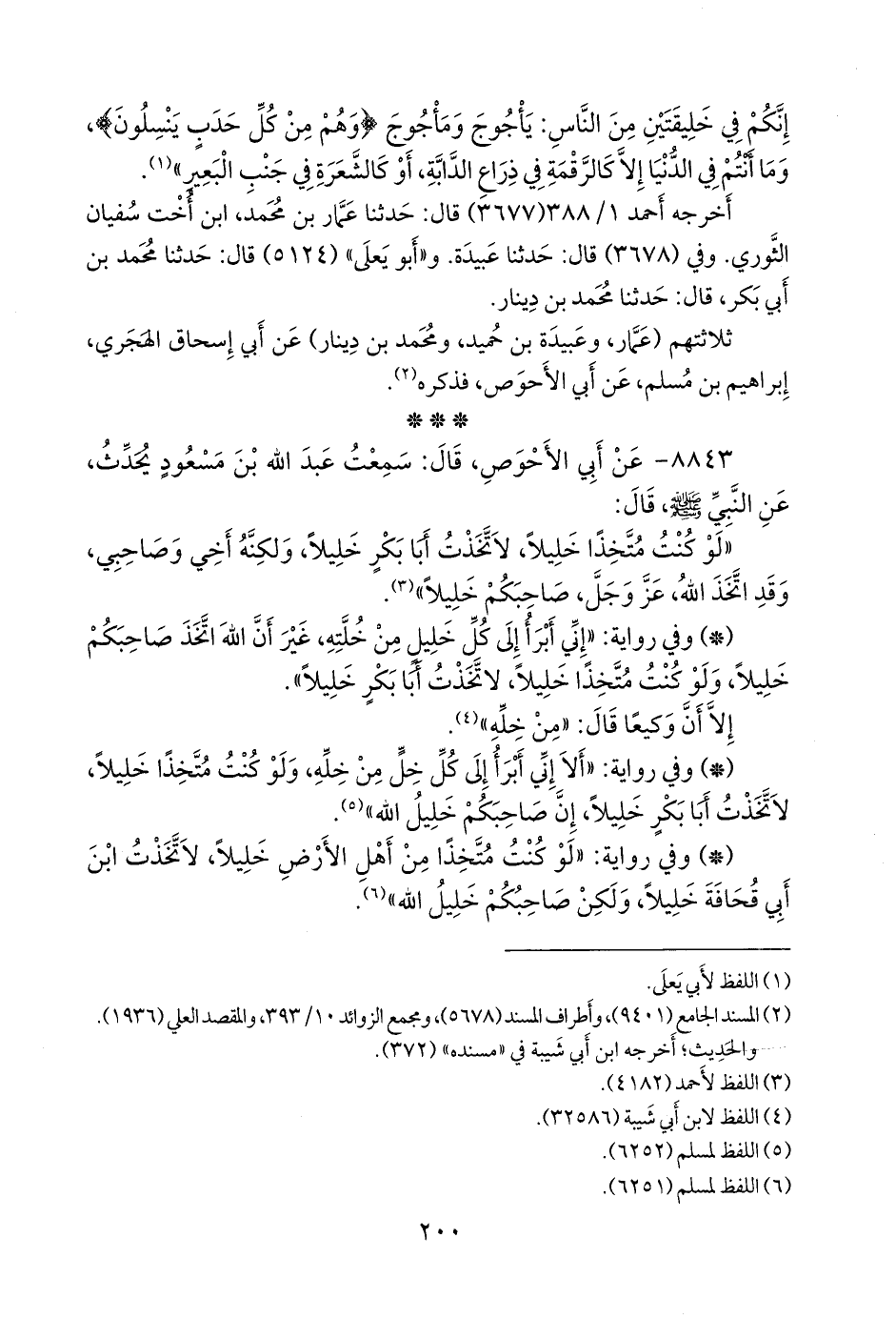 - وفي رواية: «إني أبرأ إلى كل خليل من خلته, غير أن الله اتخذ صاحبكم خليلا, ولو كنت متخذا خليلا، لاتخذت أبا بكر خليلا».