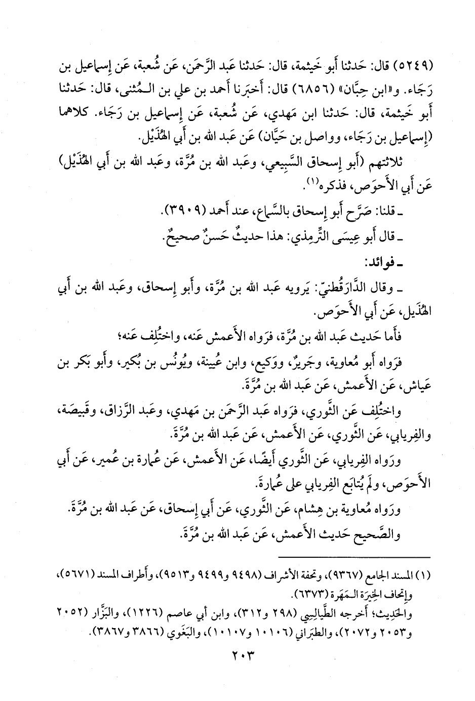 - قال الدارقُطني: يرويه عبد الله بن مُرَّة، وأَبو إسحاق، وعبد الله بن أبي الهذيل، عن أبي الأحوص.