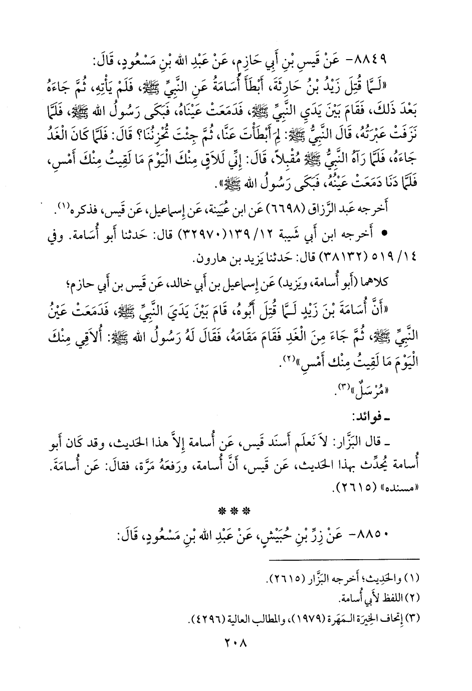 ٨٨٤٩ - عن قيس بن أبي حازم، عن عبد الله بن مسعود، قال: