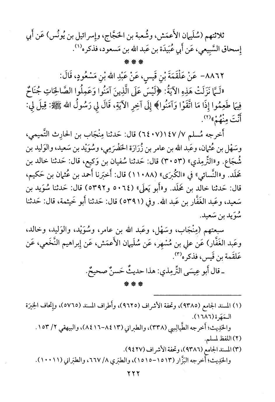 ٨٨٦٢ - عن علقمة بن قيس، عن عبد الله بن مسعود، قال: