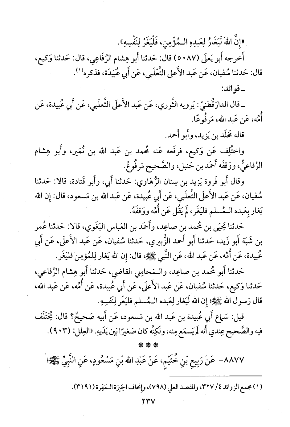 - وقال الدارقُطني: يرويه الثوري، عن عبد الأعلى الثعلبي، عن أبي عبيدة، عن أمه، عن عبد الله، مرفوعًا.