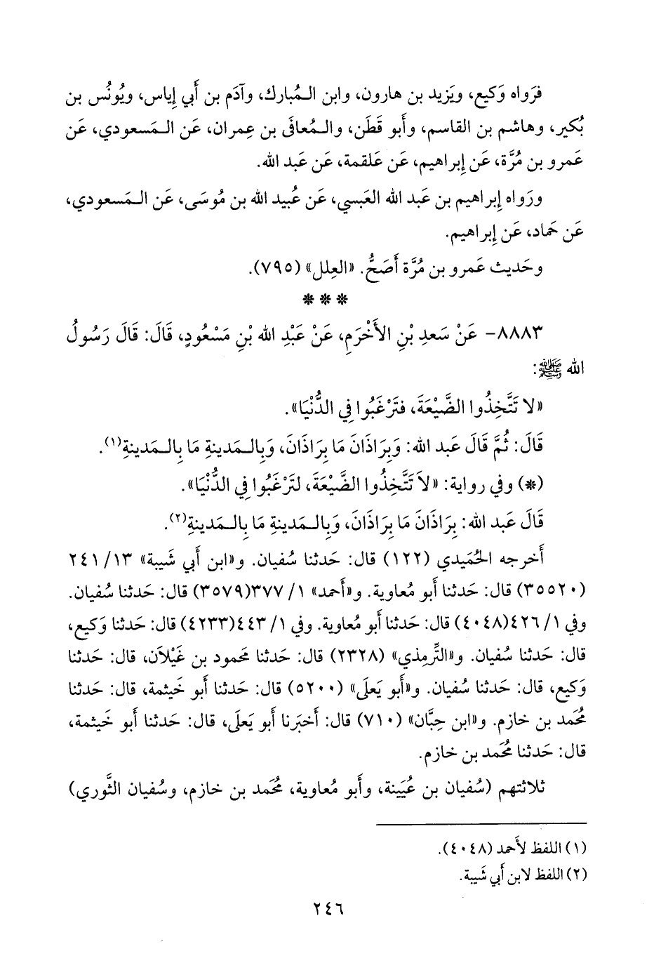 (¬٣) المسند الجامع (٩٤٠٤)، وتحفة الأشراف (٩٢٣١)، وأطراف المسند (٥٥٠١).