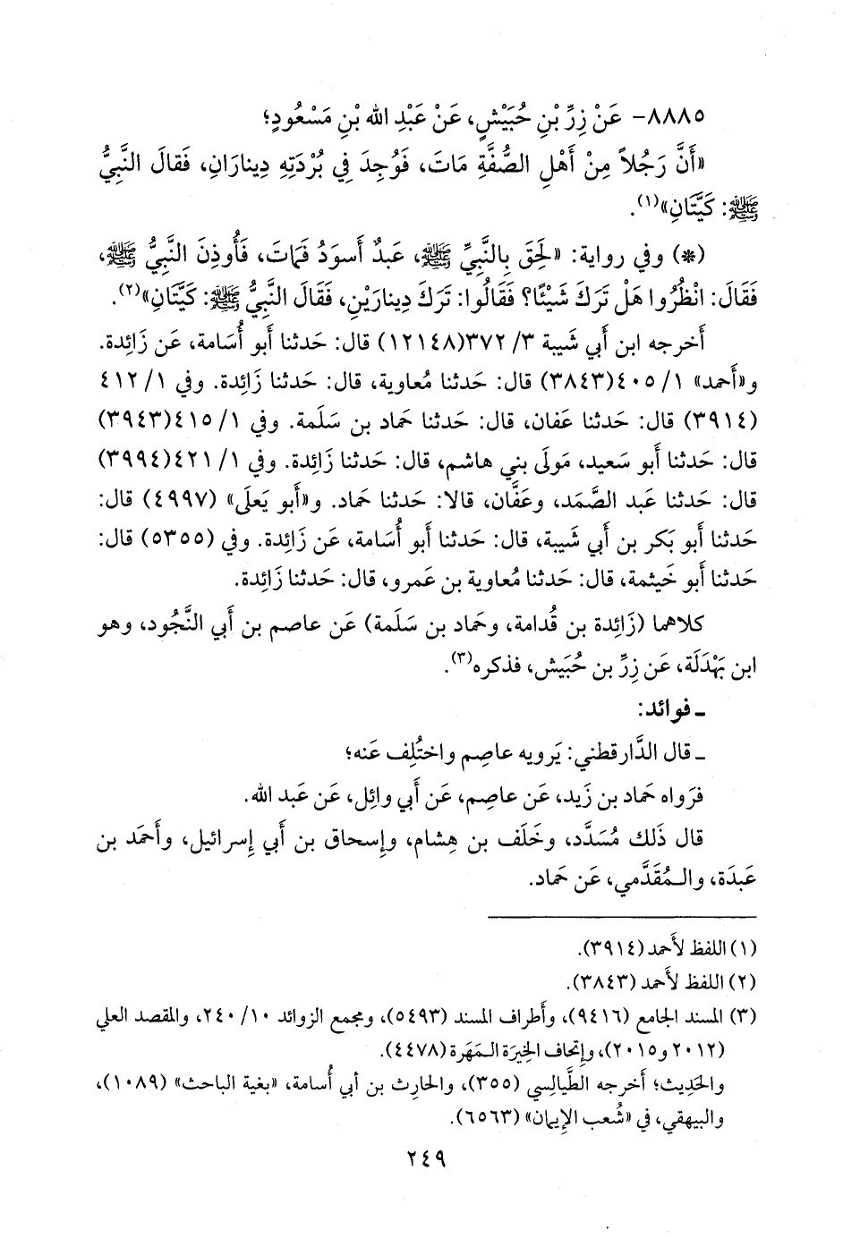 ٨٨٨٥ - عن زِرّ بن حُبَيش، عن عبد الله بن مسعود؛