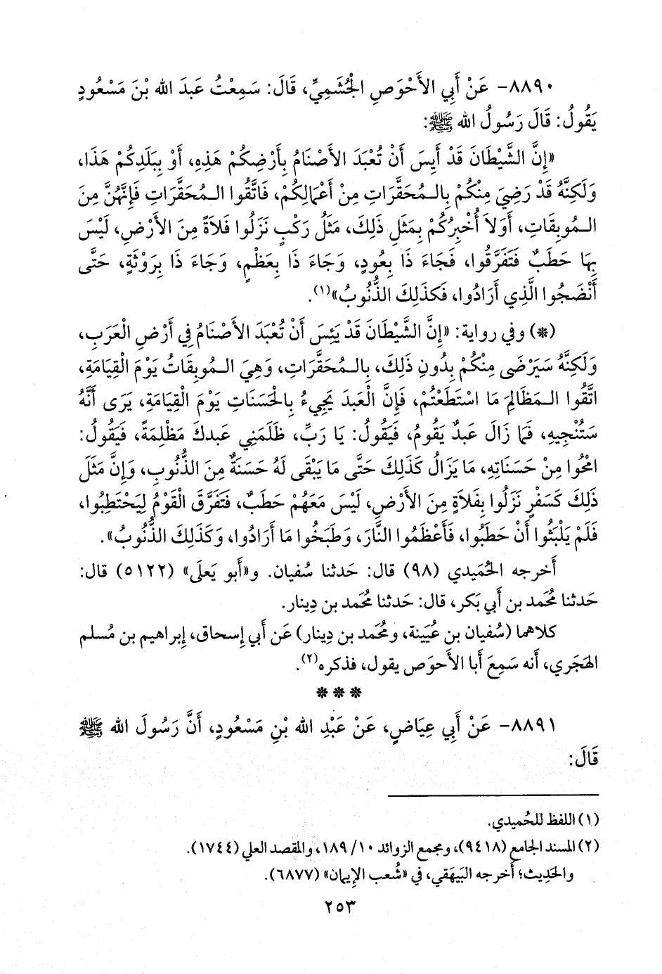 ٨٨٩٠ - عن أبي الأحوص الجشمي, قال: سمعت عبد الله بن مسعود يقول: قال رسول الله صَلى الله عَليه وسَلم: