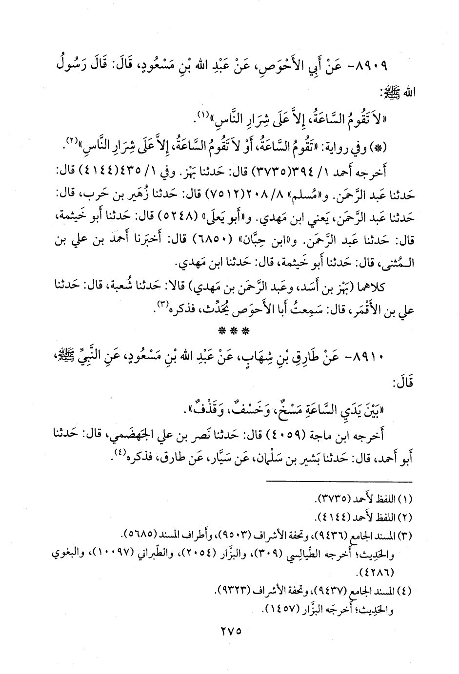 (¬١) المسند الجامع (٩٤٣٧)، وتحفة الأشراف (٩٣٢٣).