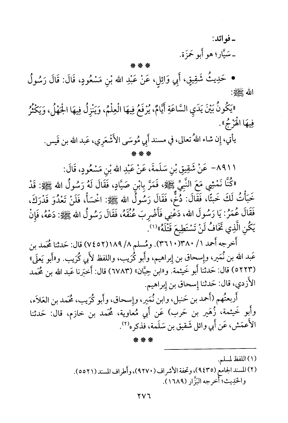 (¬٢) المسند الجامع (٩٤٣٥)، وتحفة الأشراف (٩٢٧٠)، وأطراف المسند (٥٥٢١).